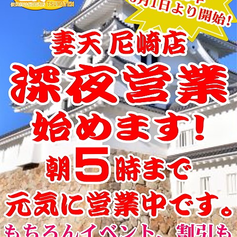 妻天尼崎店朝5時まで営業中!!
